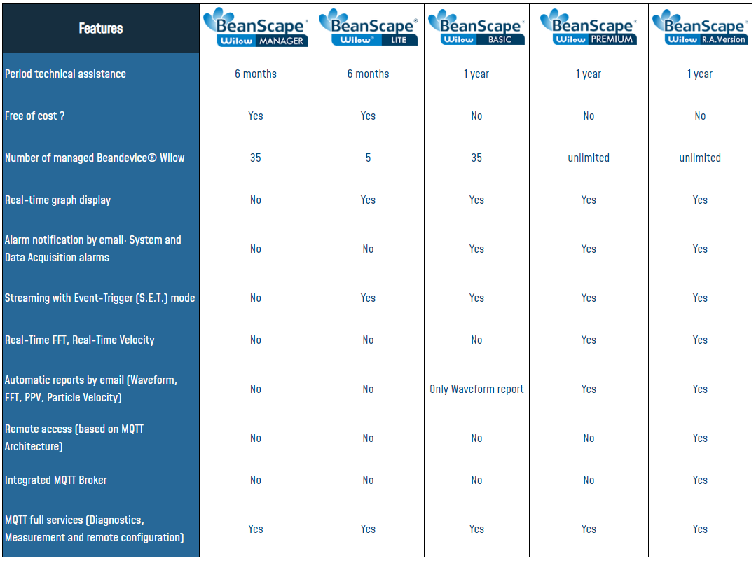 Il BeanScape® Wilow® è un software per il controllo e la supervisione dedicato per i sensori IIOT wireless Wilow®, dotato di sistema esperto che permette all'utilizzatore di interpretare elementi come l'acquisizione dati o gli allarmi relativa alla rete di sensori.
