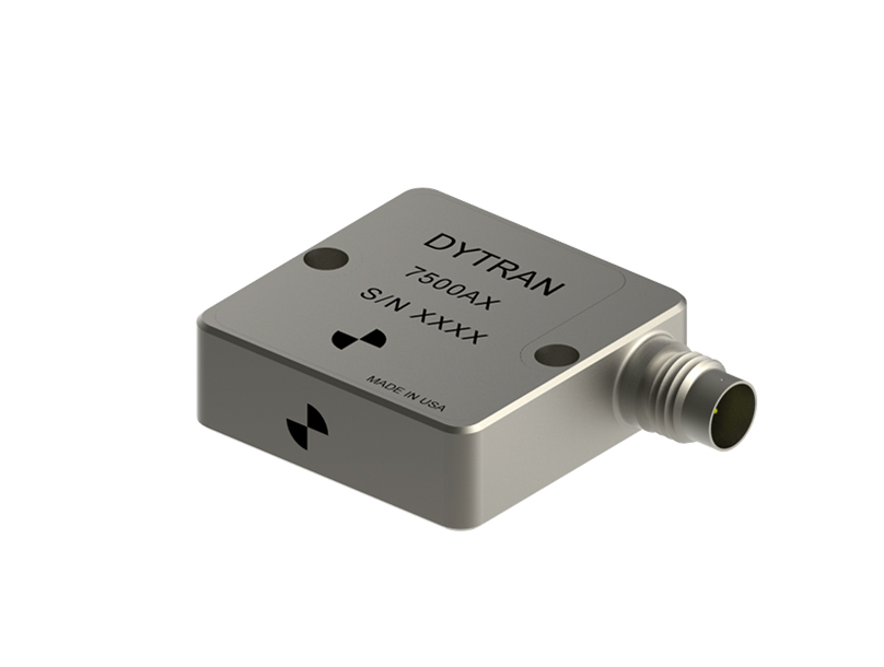 Accelerometri MEMS monoassiali di Dytran (serie 7500, 7509 e 7531) e triassiali (serie 7503, 7533) con uscita analogica, range di misura da 2 g fino a 400 g, custodia in alluminio o titanio, alimentazione da 5 VDC fino a 32 VDC, con connettore oppure cavo integrato, uscita single-ended o differenziale.