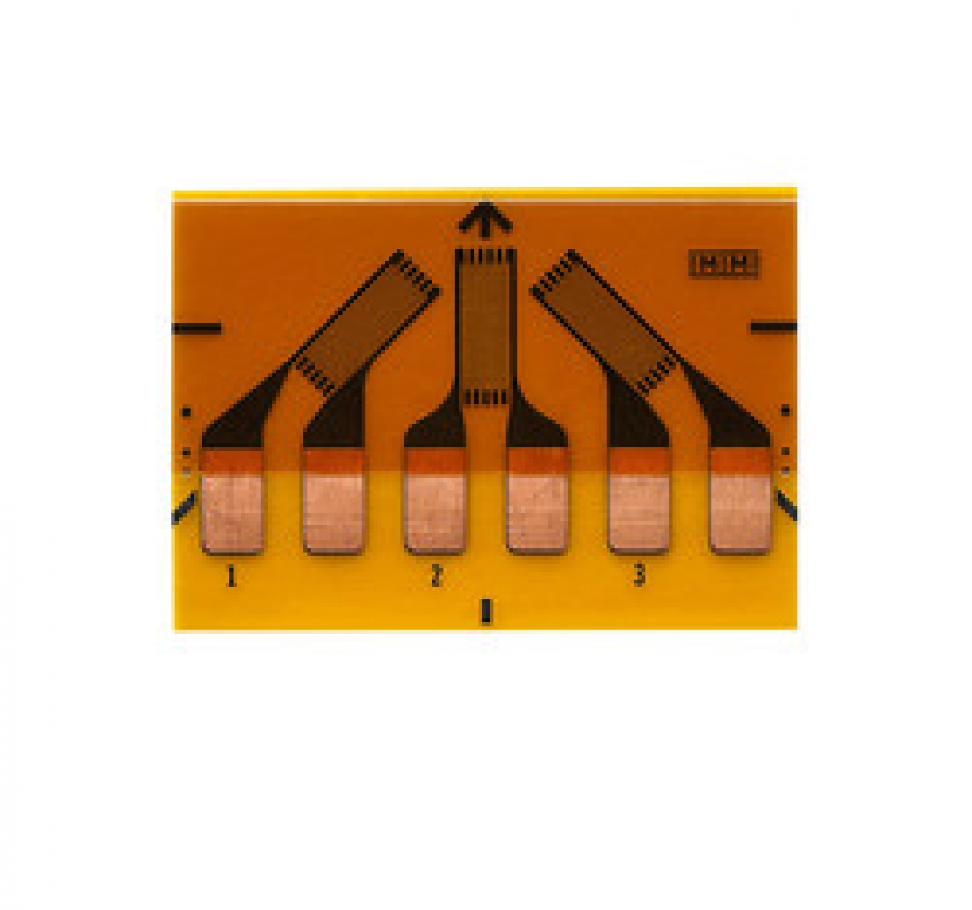 Le rosette estensimetriche rettangolari dispongono di tre griglie di misura orientate a 0°/45°/90° e sono disponibili sia in versioni sovrapposte che planari. Le lunghezze variano da 0,79 mm a 6,35 mm.