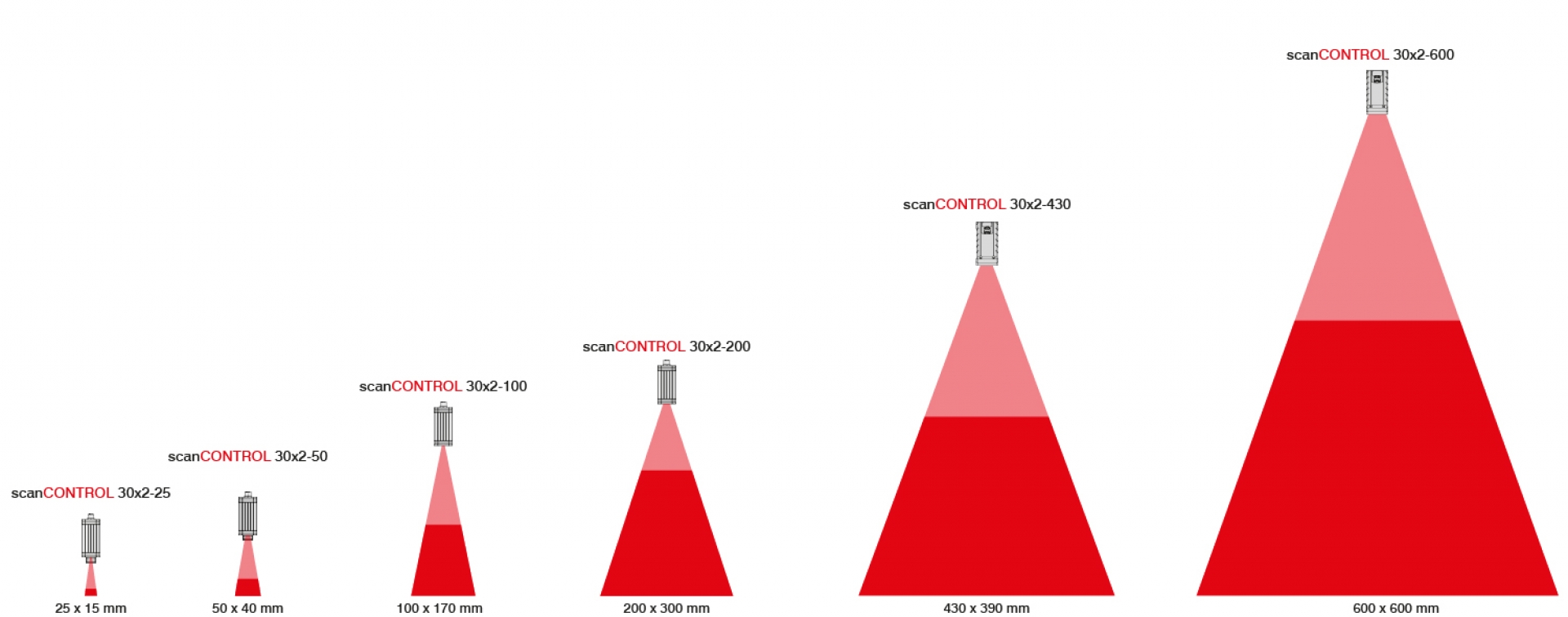 Il vantaggio applicativo principale del profilometro laser scanCONTROL 30x2 è l'ampiezza del campo di misura: l'asse Z arriva a 600 mm e l'asse X a 380 mm, con varianti dedicate da 430×390 mm e 600×600 mm per il rilevamento di oggetti di grandi dimensioni in una singola acquisizione. Questo lo rende adatto alla misura di profili su lamiere, strutture metalliche, componenti automotive di grandi dimensioni e qualsiasi applicazione in cui il campo ristretto dei modelli compatti non è sufficiente. Su questi campi estesi, il sensore mantiene una risoluzione laterale fino a 1.024 punti con una distanza tra punti da 24 µm e una linearità sull'asse Z da 2 µm, garantendo un livello di dettaglio adeguato anche in contesti dove le tolleranze geometriche sono strette.