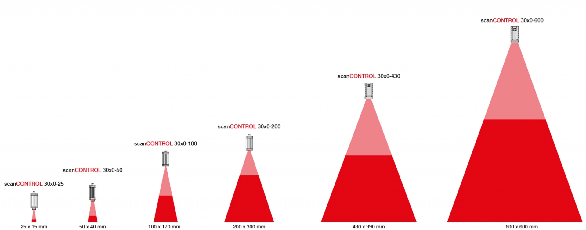 Il posizionamento del profilometro laser scanCONTROL 30x0 nella famiglia di sensori di profilo è determinato dai suoi campi di misura: asse Z fino a 380 mm e asse X fino a 600 mm, valori che aprono applicazioni su geometrie ampie e strutture che i modelli compatti non possono coprire — dalla misura di profili estrusi e lamiere alla verifica dimensionale di binari ferroviari e componenti strutturali. Su questo campo, il sistema acquisisce con una risoluzione laterale fino a 2.048 punti e una distanza tra punti di soli 12 μm nel modello a campo ristretto, mantenendo il dettaglio geometrico anche nelle sezioni più critiche.