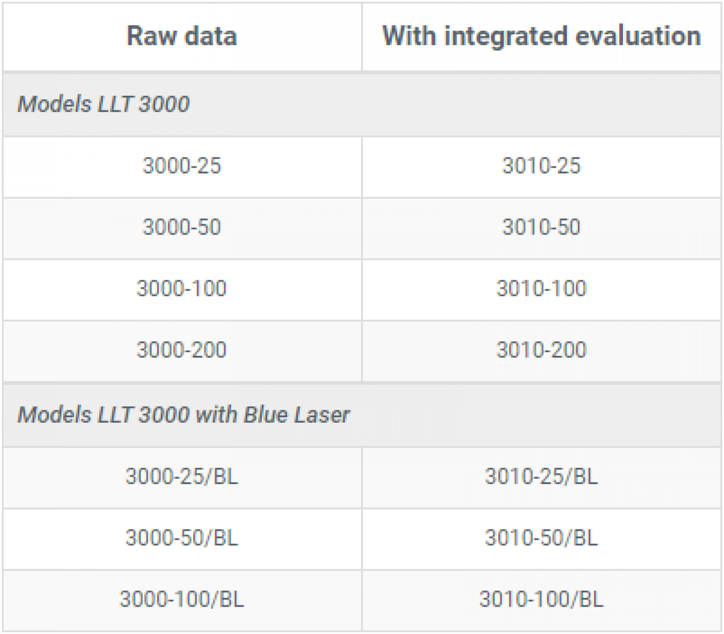 I laser scanner della serie LLT30x0 sono compatti e leggeri. Il controller integrato semplifica il cablaggio e l’integrazione. Le numerose interfacce, come i segnali di commutazione digitali, Ethernet, PROFINET, EtherNet/IP o EtherCAT, consentono l'output diretto dei dati misurati.