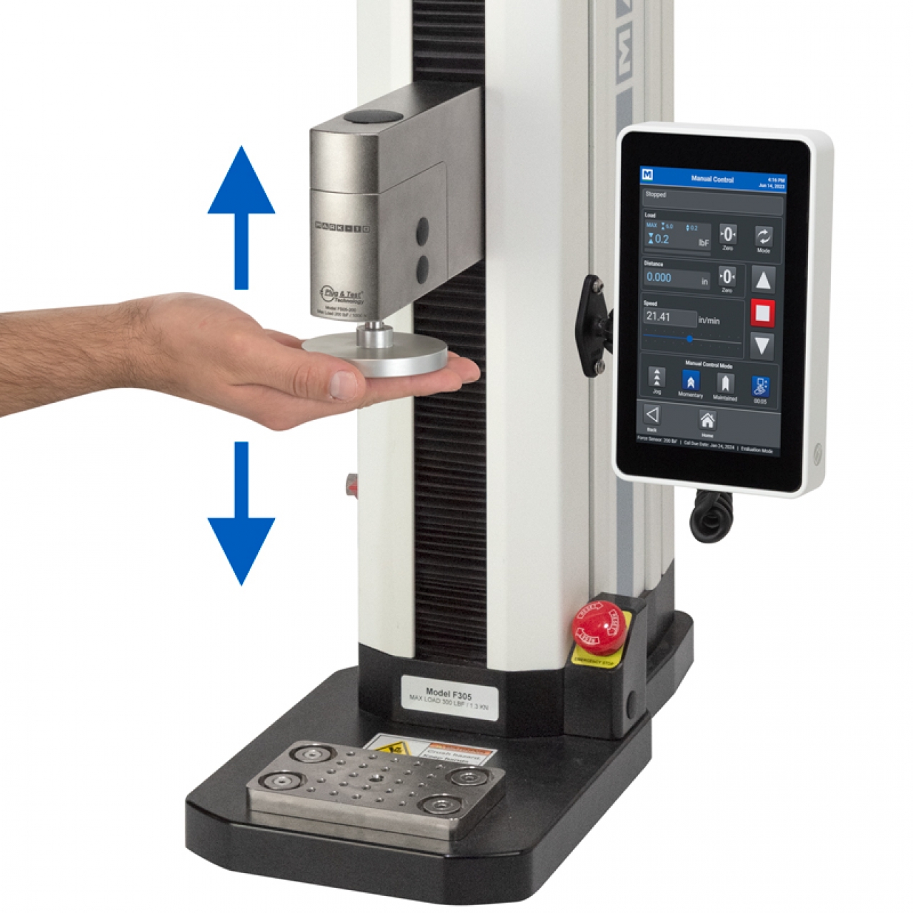 ll banco dinamometrico F1505S EM di Mark-10 è progettato per eseguire prova di forza in trazione e compressione, con capacità di carico fino a 6,7 kN e una corsa corta di 360 mm. La configurazione del banco è verticale e dispone di una vasta gamma di sistemi di aggancio e fissaggio.