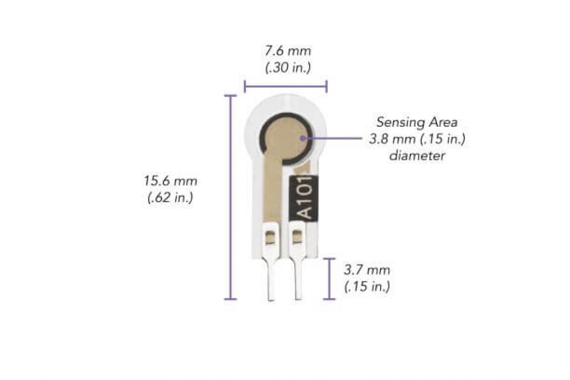 Il sensore FSR di forza A101, il più piccolo della famiglia FlexiForce™, è ideale per le applicazioni OEM o per essere integrato direttamente nei prodotti.