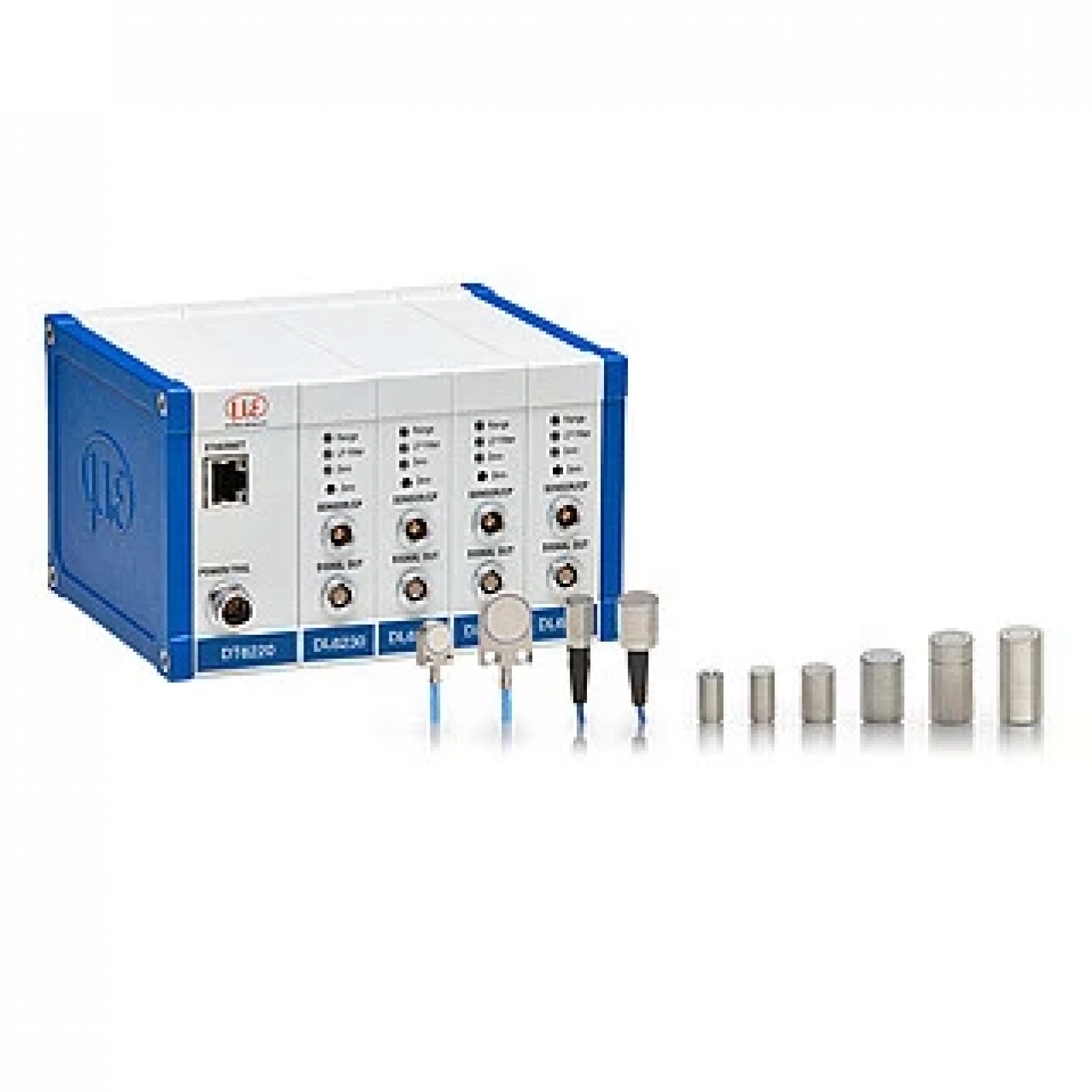 L'architettura del capaNCDT 6200 si basa sulla separazione fisica tra controller e demodulatore: ogni canale aggiuntivo richiede solo l'inserimento di un demodulatore dedicato nello stesso chassis, senza modifiche al cablaggio principale né alla configurazione software. Il demodulatore DL6220 è la scelta per applicazioni di misura standard con risoluzione statica di 0,004% FSO e banda di 5 kHz (-3dB). Il demodulatore DL6230 porta la risoluzione statica a 0,0005% FSO — equivalente a meno di 0,2 nm sui range più stretti — abilitando misure nell'ordine del sub-nanometro su target metallici piani: wafer semiconduttori, superfici ottiche, componenti di precisione. Per applicazioni dinamiche, il controller DT6222 estende la risposta in frequenza fino a 20 kHz (-3dB), con velocità di campionamento digitale di 4 × 3,9 kSa/s.