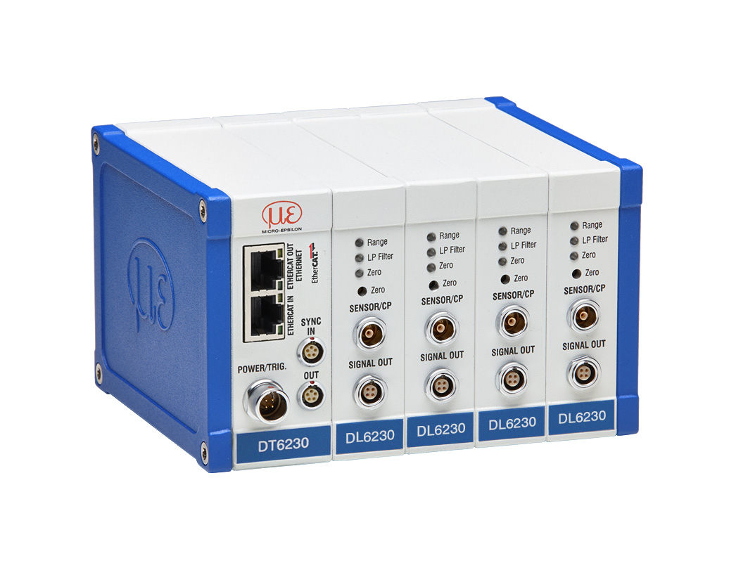 Il demodulatore DL6230 viene utilizzato nelle applicazioni che richiedono altissime risoluzione e può operare in modalità sincro. Dispone di segnali di uscita analogici e, a seconda del controller, di un'interfaccia digitale Ethernet (controller DT6220) o Ethernet/EtherCAT (controller DT6230). Il demodulatore DL6230 è compatibile con tutti i sensori e cavi della serie capaNCDT.
