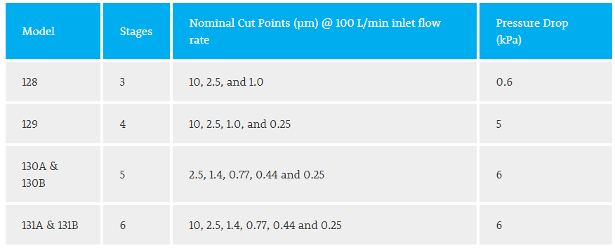 Sono disponibili configurazioni fino a 6 stadi con range 0.25-10µm
